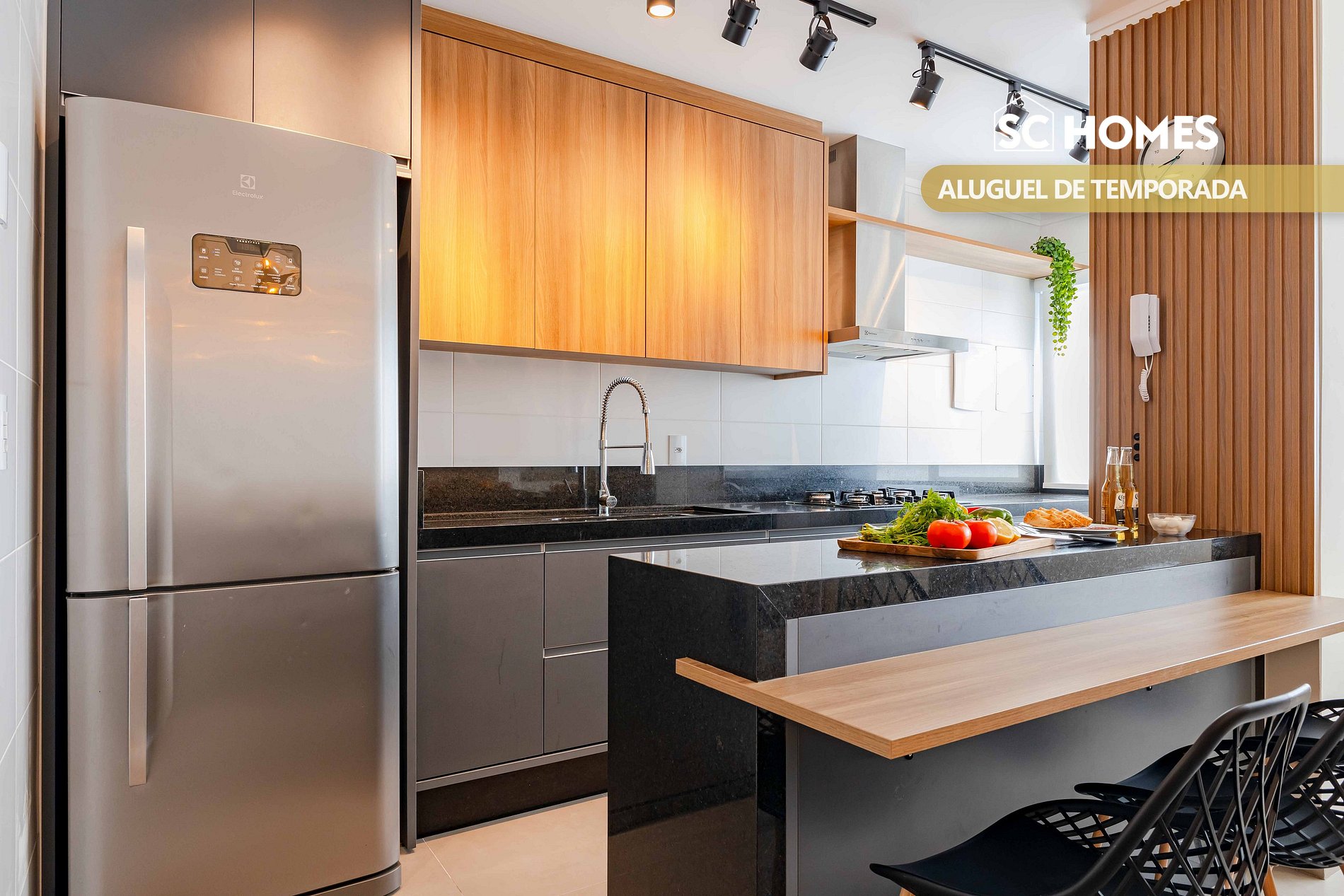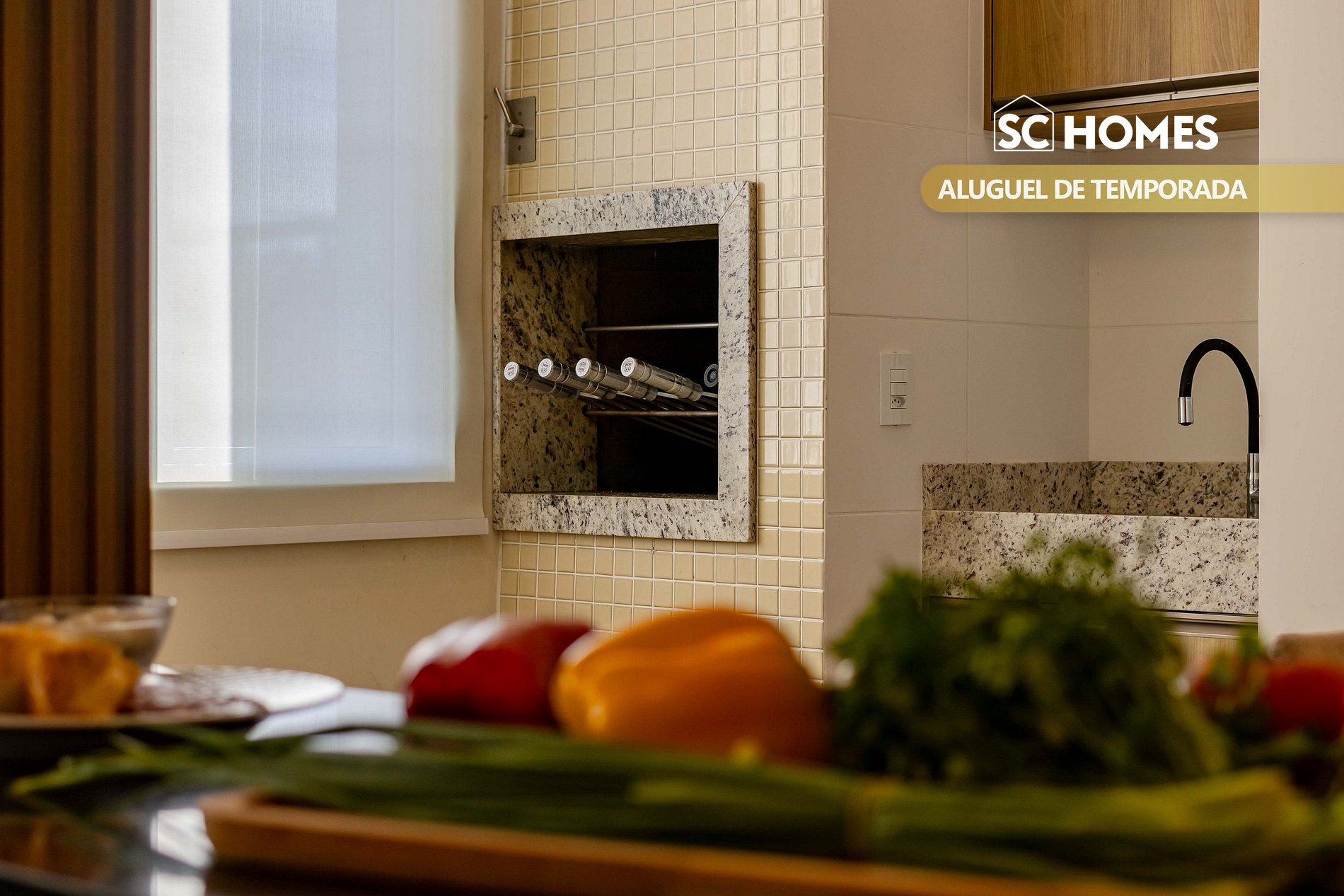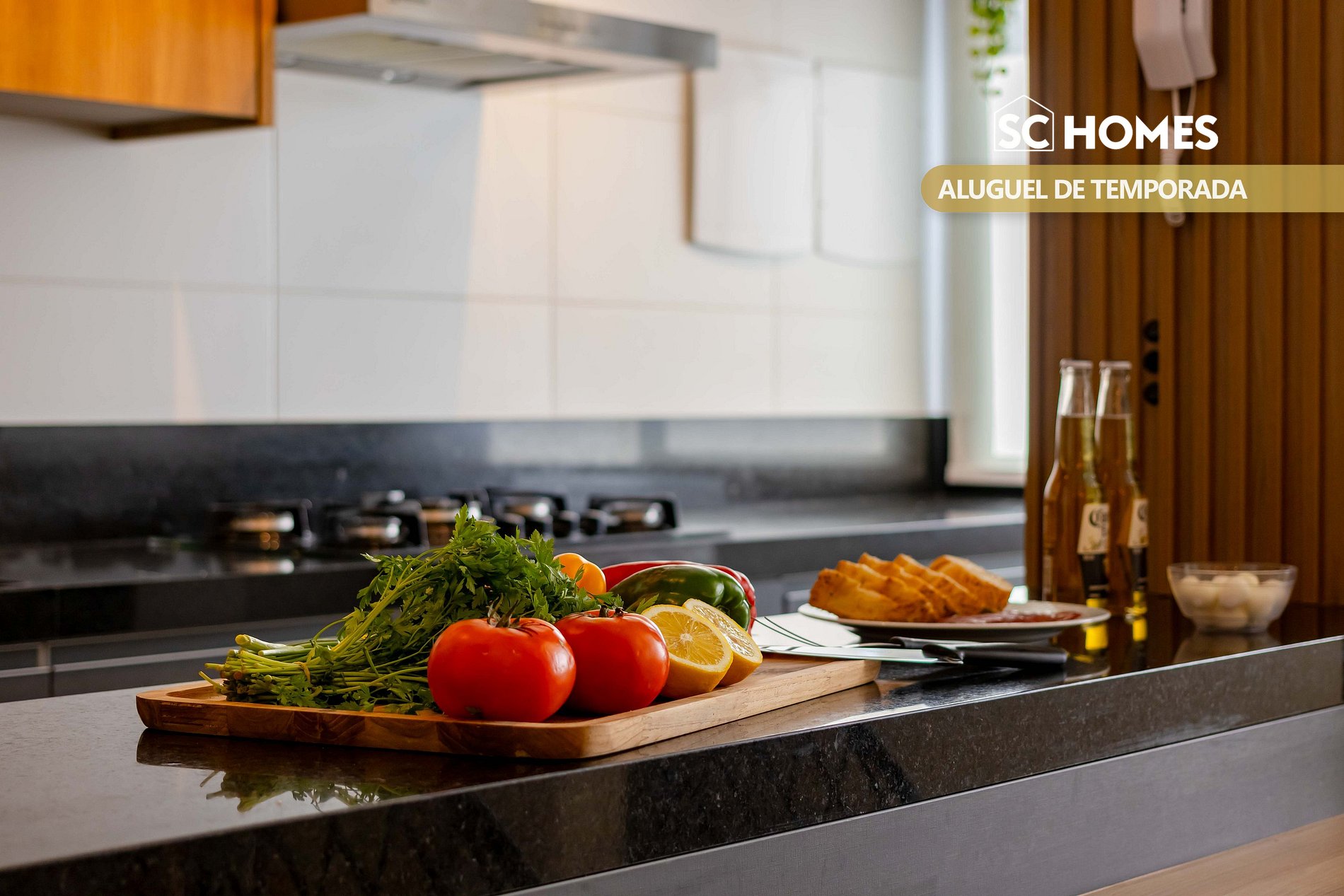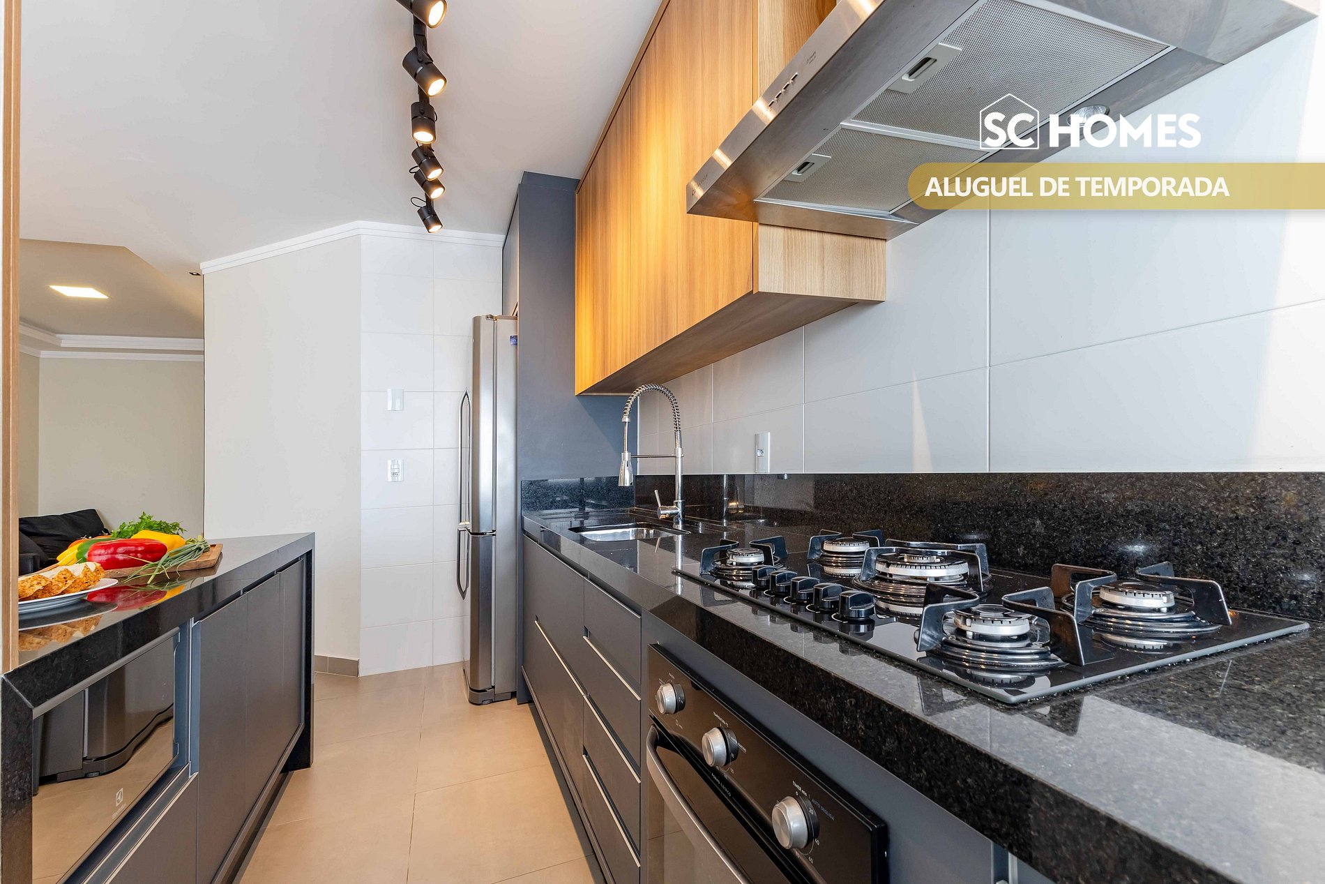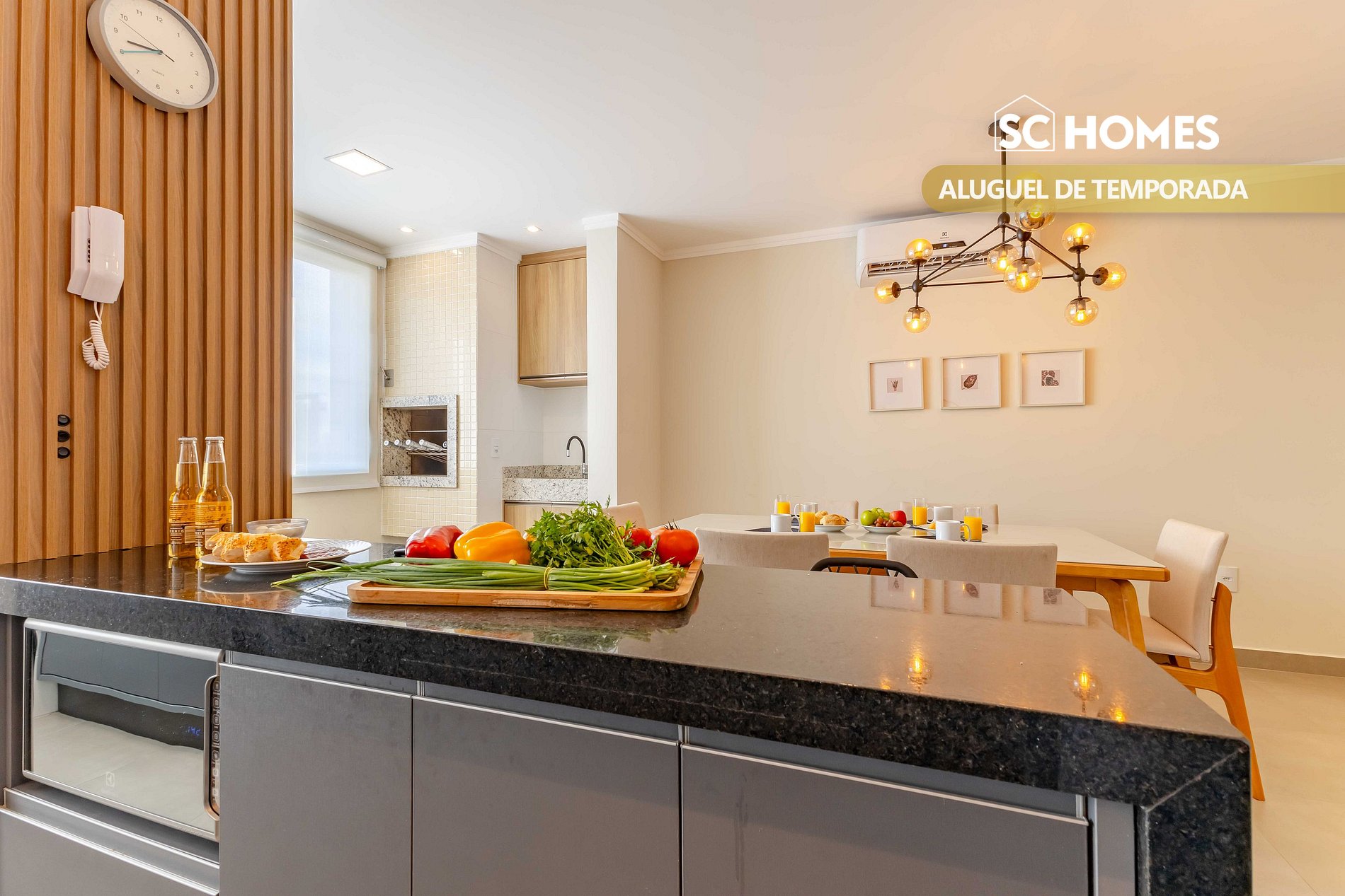 El apartamento 403 en Residencial Paradiso del Sole tiene capacidad para 6 personas (la capacidad máxima incluye niños de cualquier edad) en 2 dormitorios, uno de ellos tipo suite con cama matrimonial con somier y el otro con 4 camas individuales (1 litera y 1 cama supletoria). Los dormitorios y la sala de estar disponen de aire acondicionado. La propiedad cuenta con cocina totalmente equipada, lavandería, sala de estar-comedor, baño, balcón integrado con barbacoa y estacionamiento para 1 vehículo. (Consulte a nuestro equipo para obtener un inventario completo).