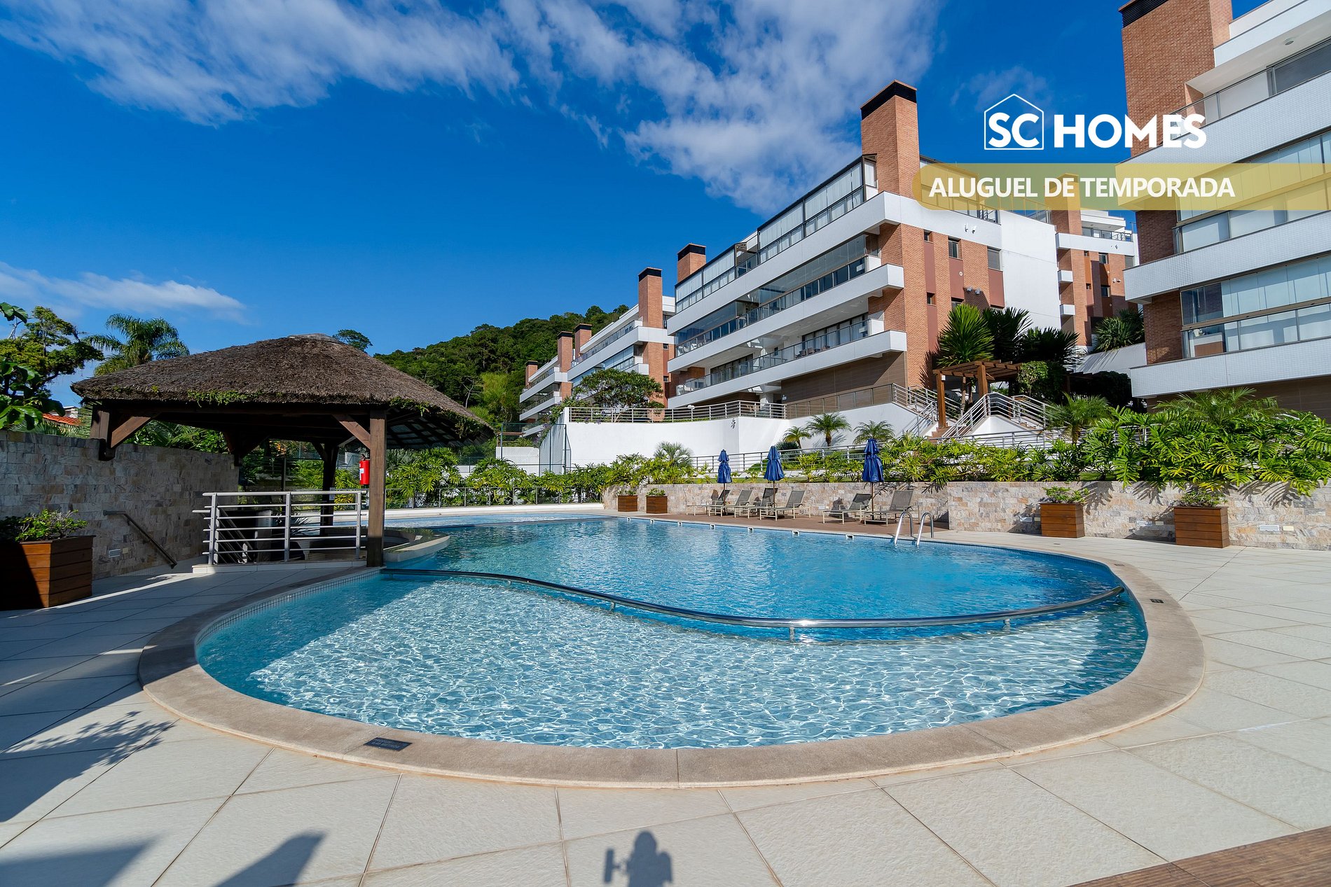 Ubicado en el centro de Bombinhas, en uno de los dos condominios más exclusivos de la ciudad, frente a la avenida y a sólo 50 m de la playa. En los alrededores se encuentra el centro comercial Punta Blu y varias opciones de comercios, restaurantes, tiendas de abarrotes, lugares a los que no todos se puede llegar caminando.
