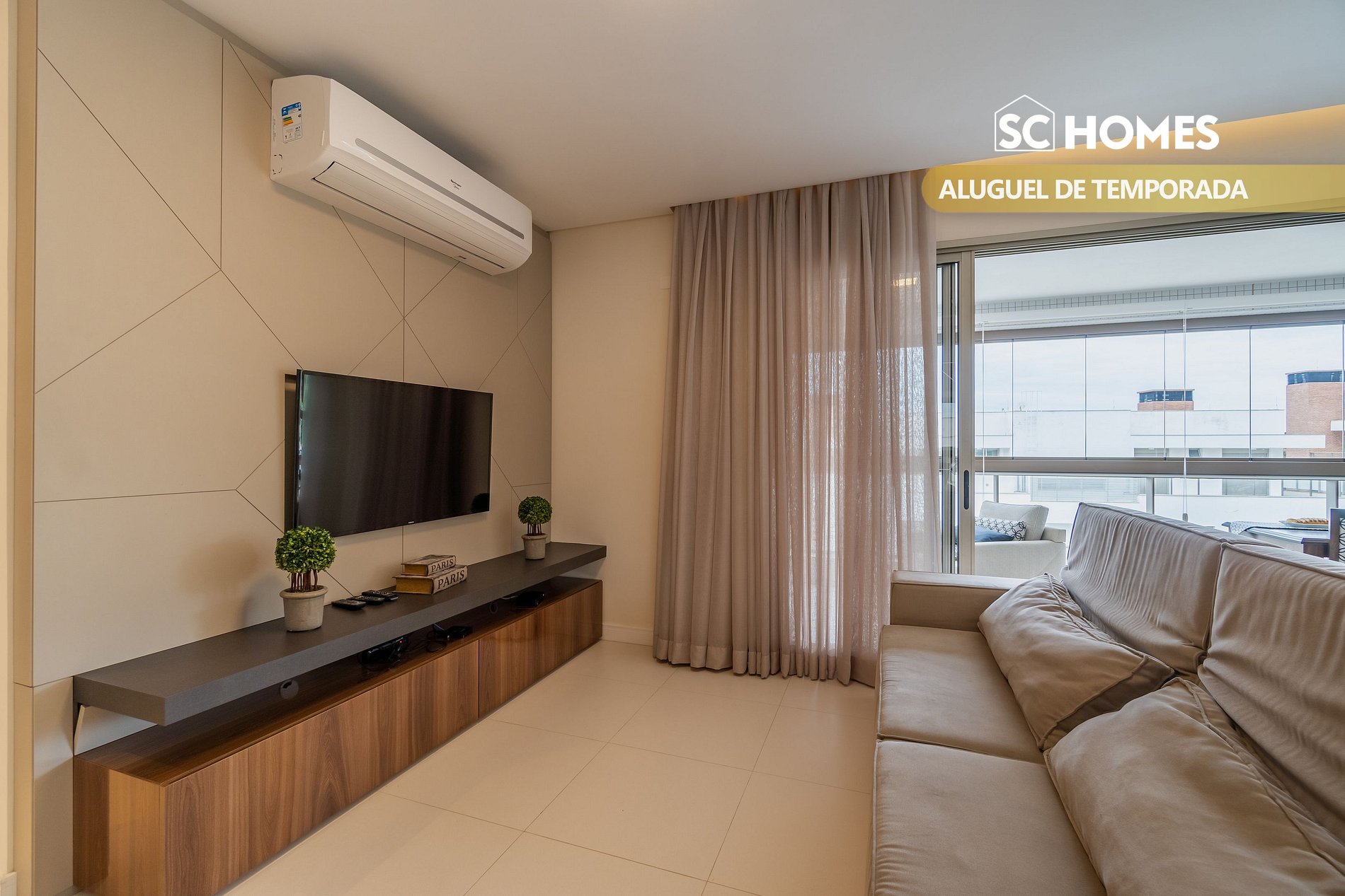 - Sala y comedor con TV y aire acondicionado split;