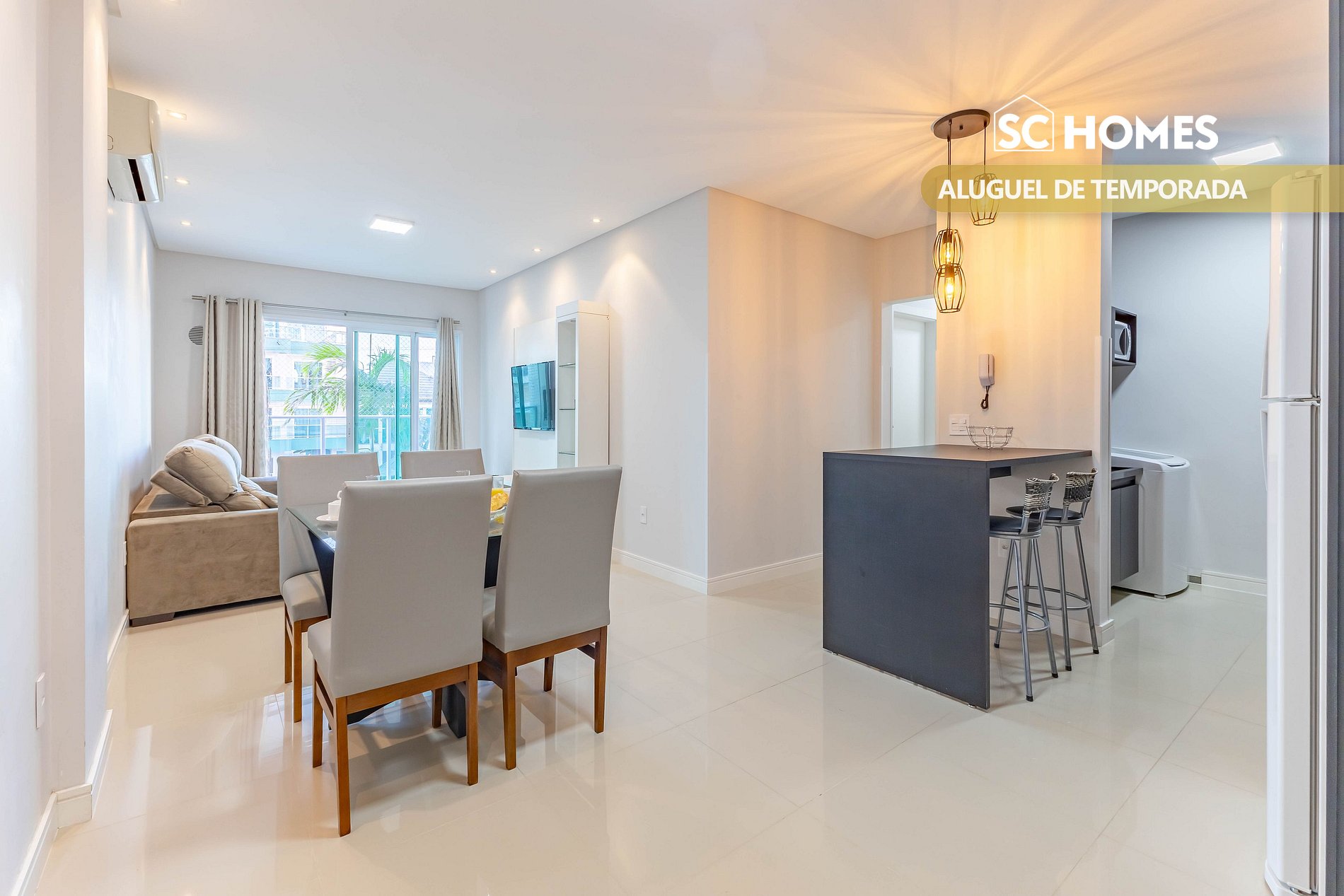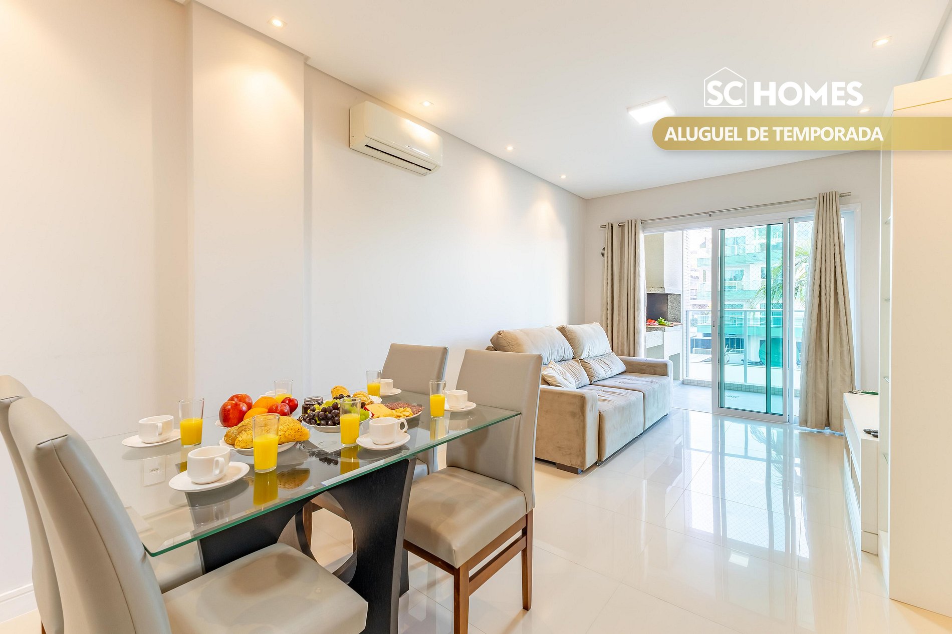 - Salón con TV LED inteligente y aire acondicionado split con sofá cama individual;