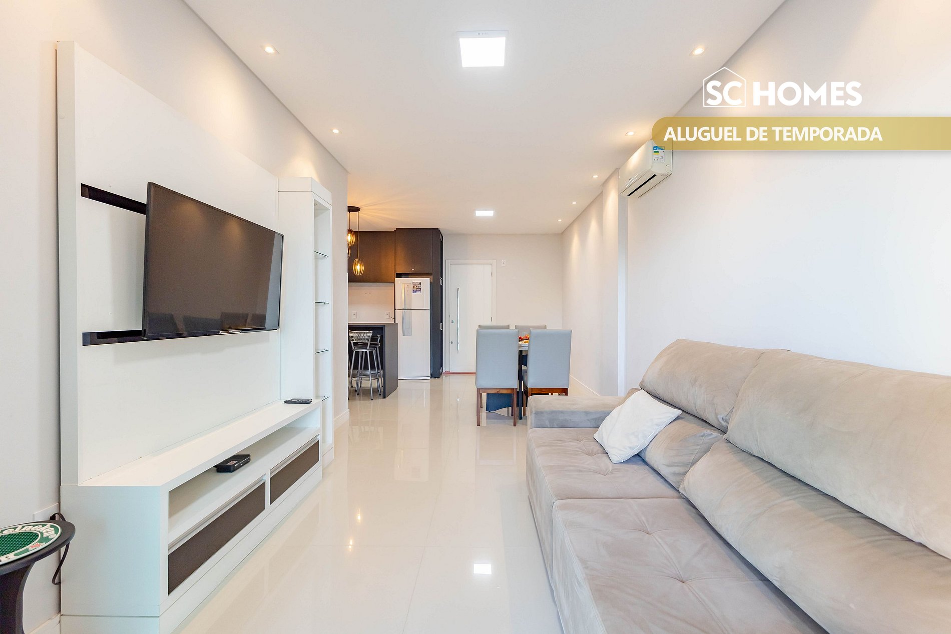 - Salón con TV LED inteligente y aire acondicionado split con sofá cama individual;