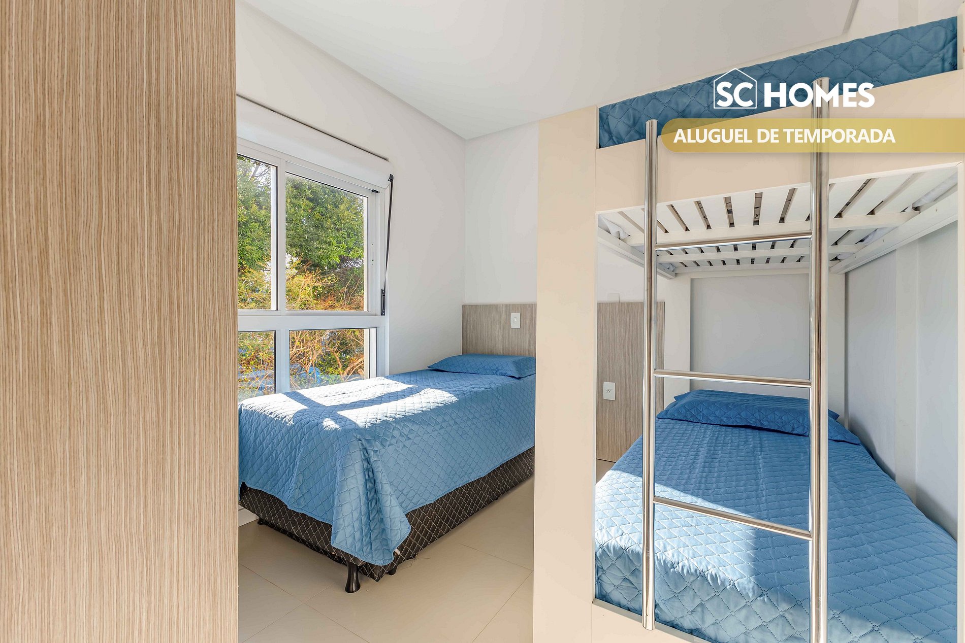 - 01 dormitorio con litera y cama box individual con colchón auxiliar y aire acondicionado split;