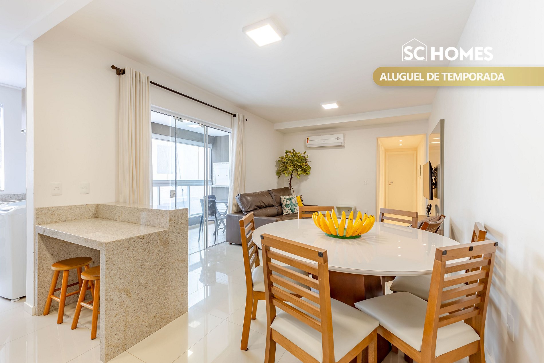 - Sala y comedor integrados con aire acondicionado split;