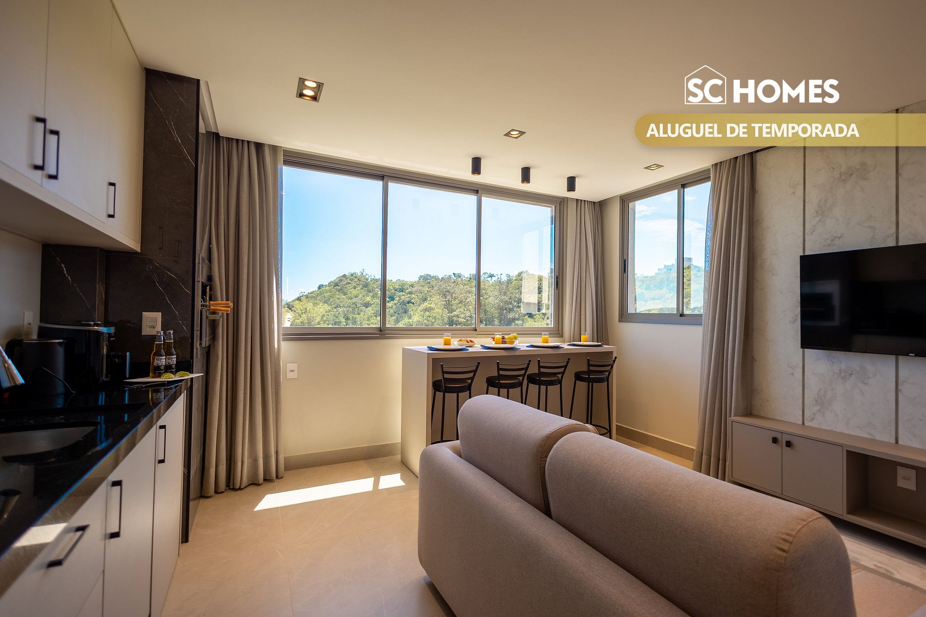 -Cozinha equipa, com fogão de indução, louças em geral e uma churrasqueira eletrica;