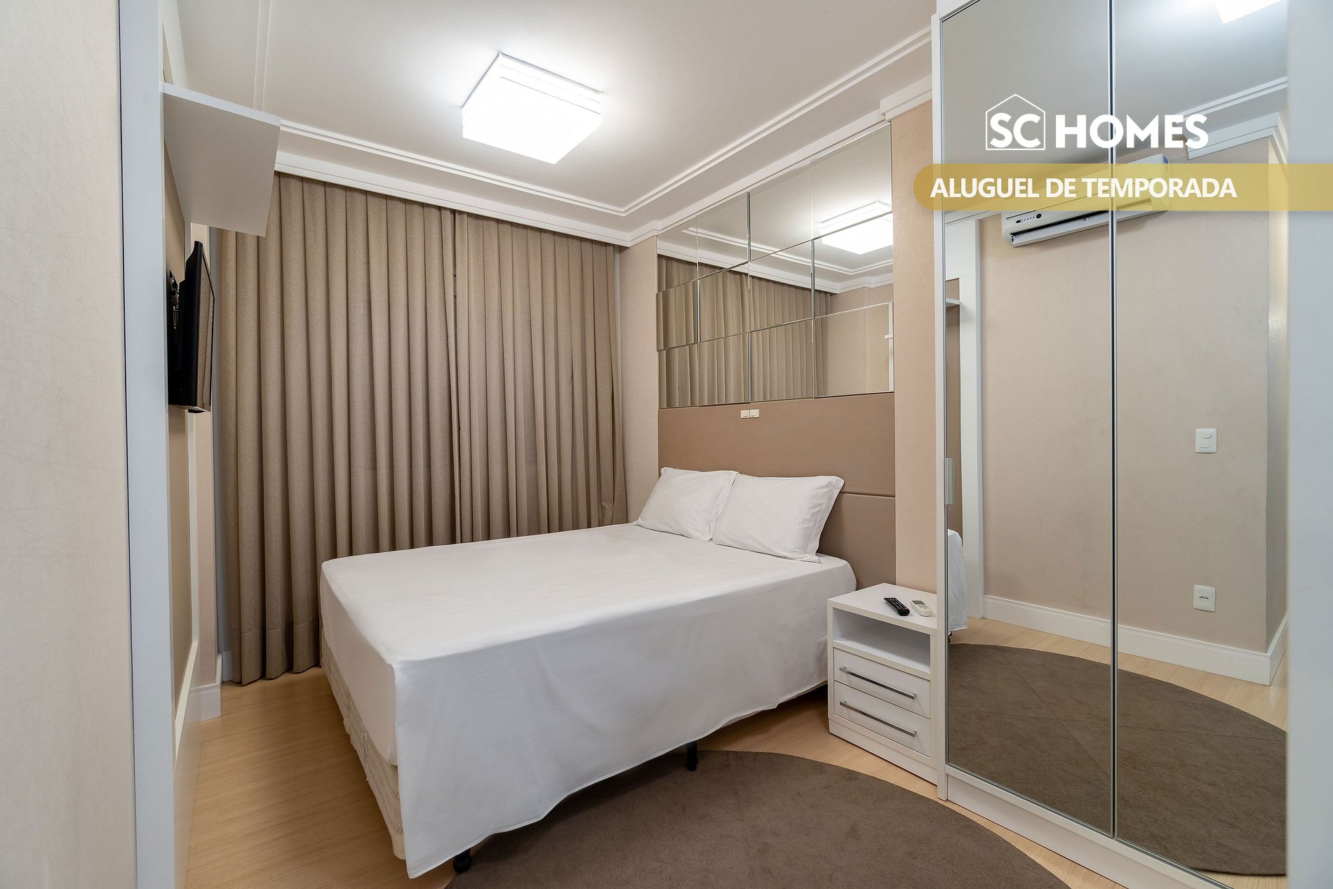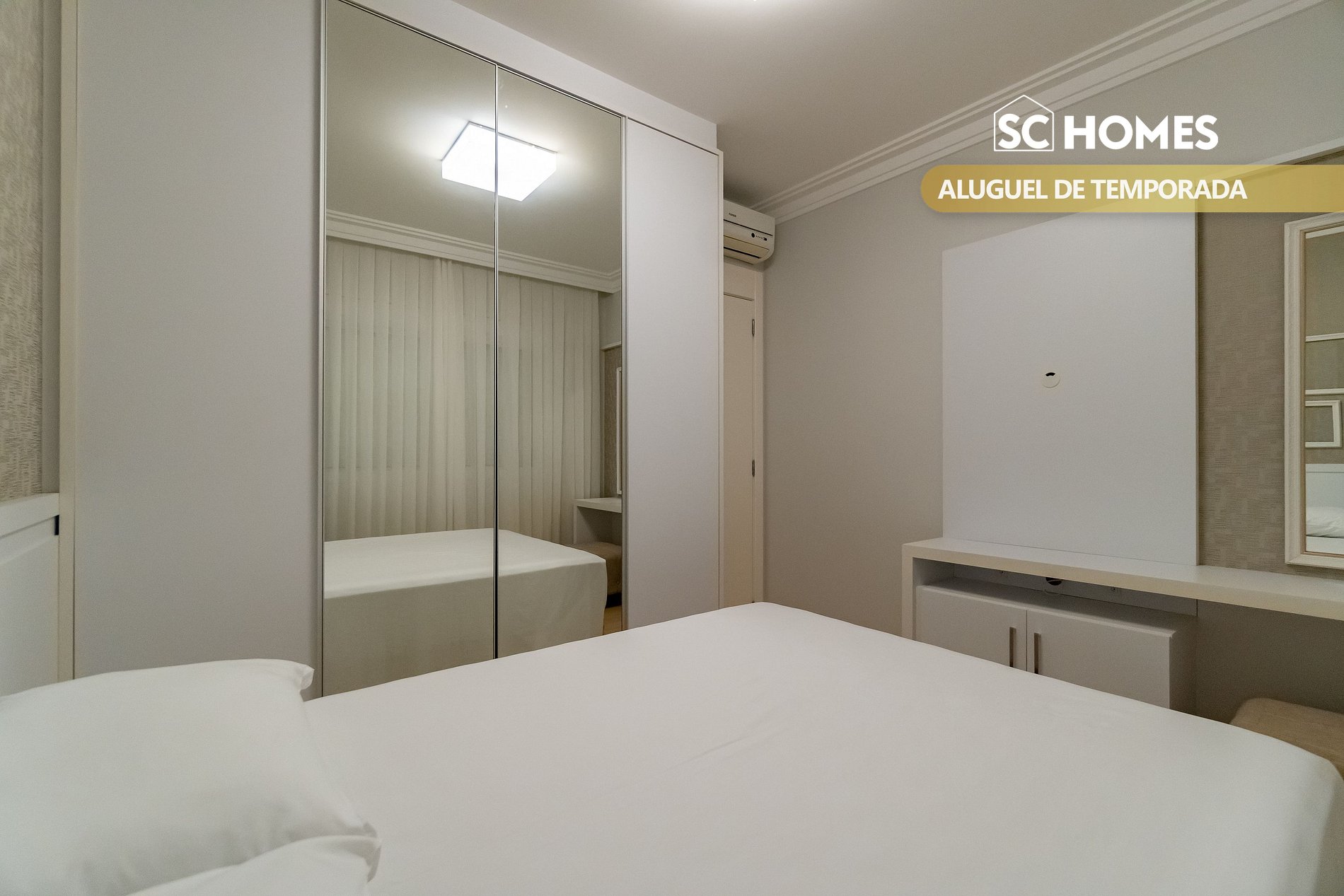 - 01 quarto com cama box de casal, tamanho queen com ar condicionado split;