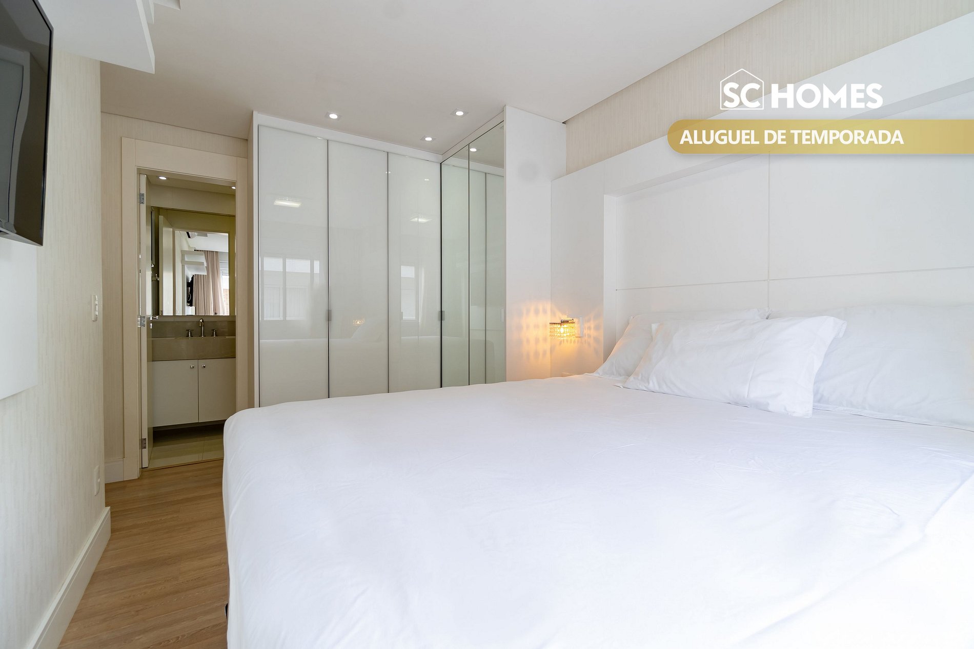 - 01 suíte com cama box de casal com TV e ar condicionado split;