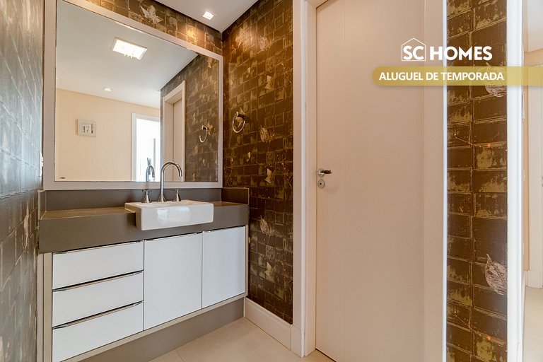 - Sacada com churrasqueira a carvão e jacuzzi (NÃO CLIMATIZADA);