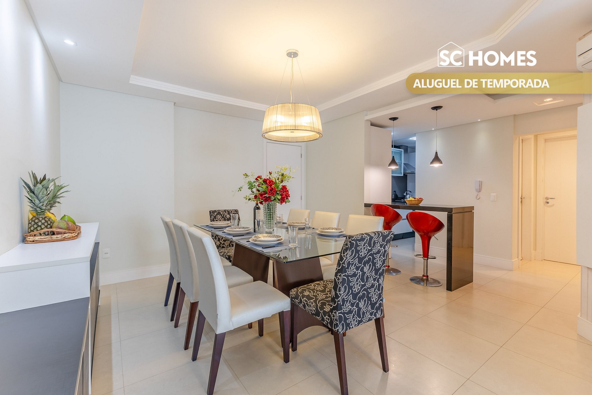O apartamento tem capacidade para até 06 pessoas em 03 dormitórios (incluindo crianças de qualquer idade), com cozinha, sala de estar e jantar, área de serviço, churrasqueira e garagem. (Não inclui roupa de cama, mesa e banho);