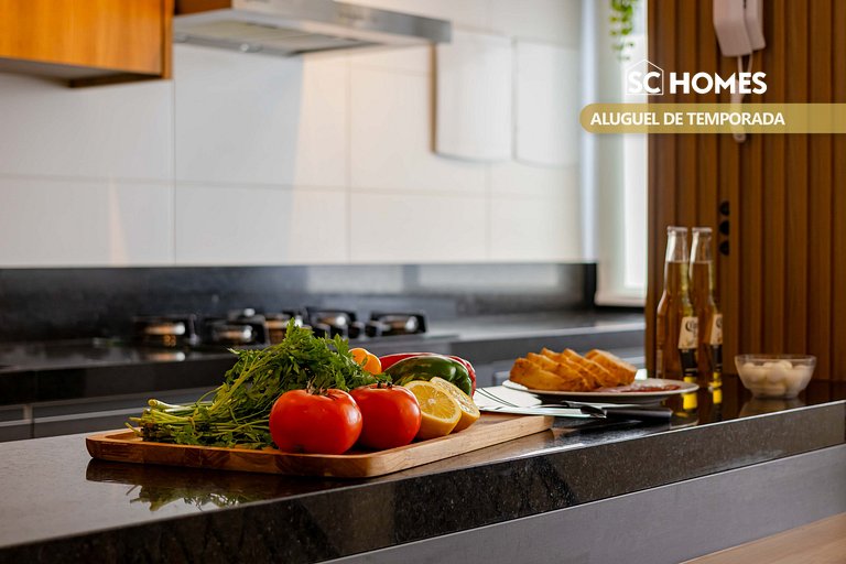 O apartamento 403 do Residencial Paradiso del Sole acomoda até 6 pessoas (capacidade máxima incluindo crianças de qualquer idade) em 02 dormitórios, sendo uma suíte com cama box de casal e quarto com 04 camas de solteiro (01 beliches e uma cama com auxiiar). Os dormitórios e sala possuem ar-condicionado. O imóvel possui cozinha completa e equipada, área de serviço, sala de estar e jantar, banheiro, sacada integrada com churrasqueira e estacionamento para 01 veículo. (Solicite inventário completo para nossa equipe).