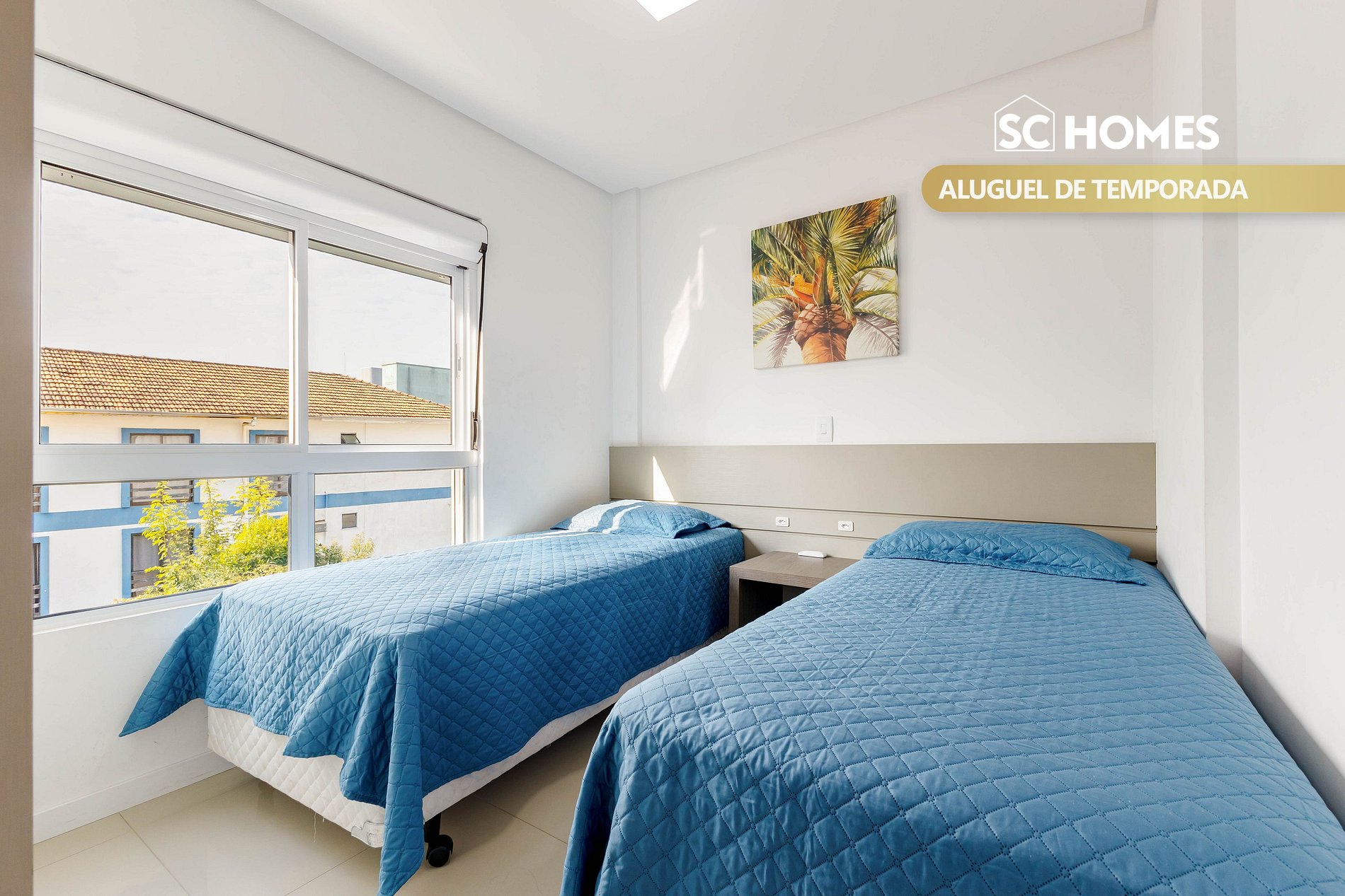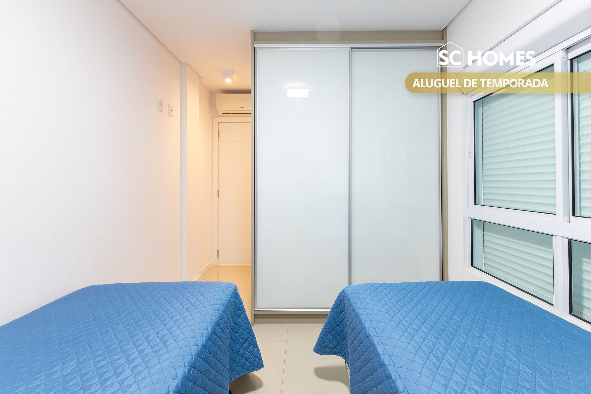 - 01 quarto com 02 camas box de solteiro e ar condicionado split;