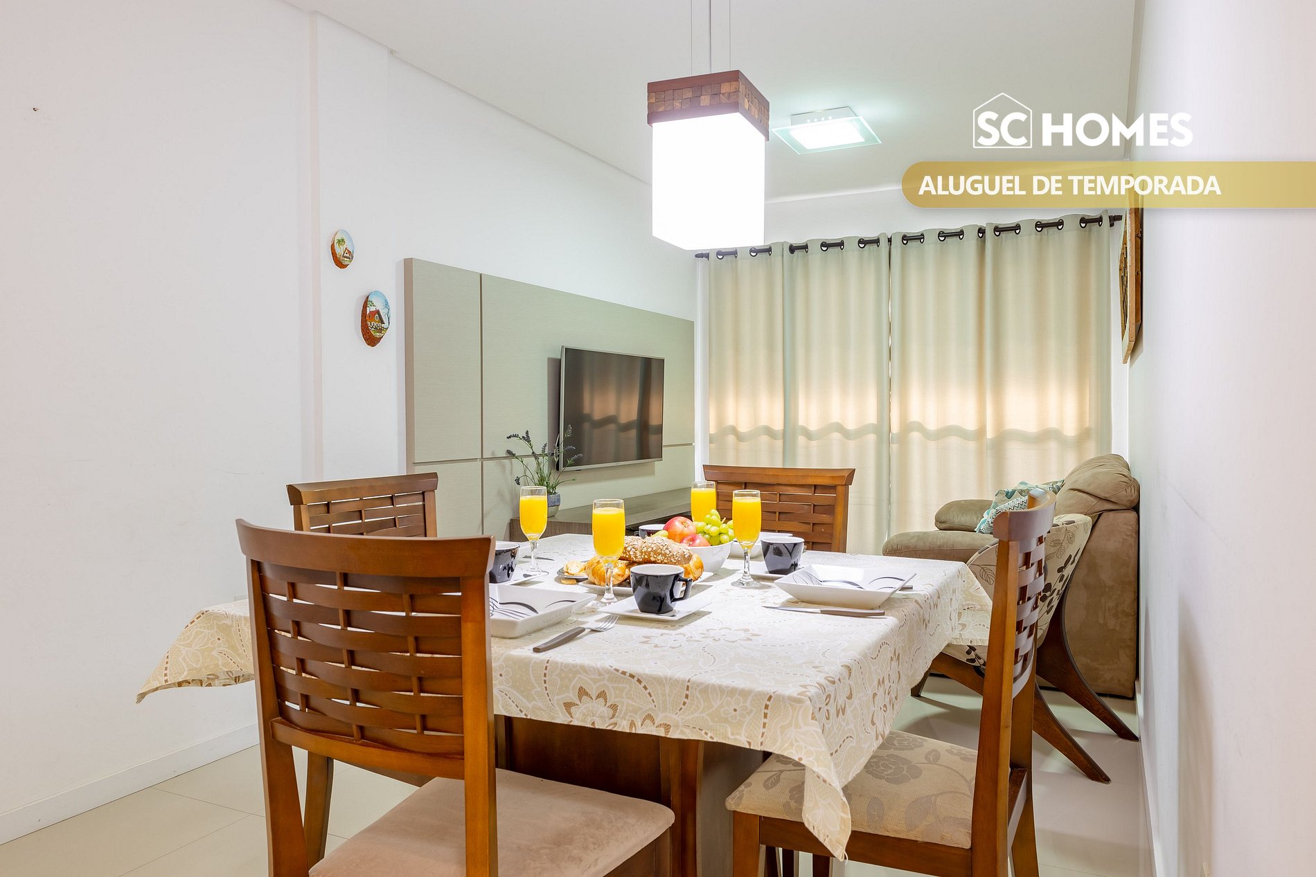 - Sala de estar e jantar com smart TV e ar condicionado split;