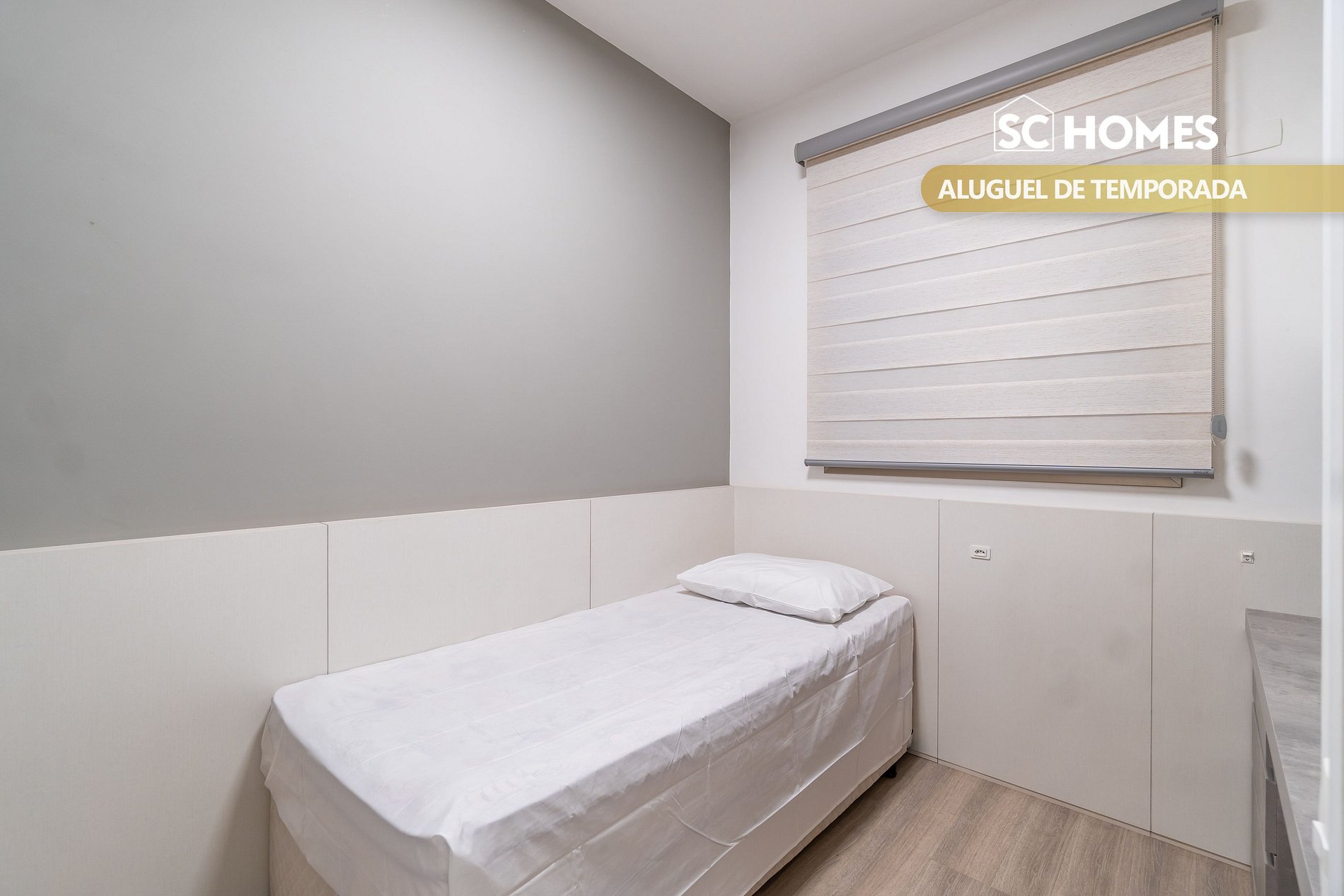 - 01 Dormitório com um cama box de solteiro e ar condicionado split;