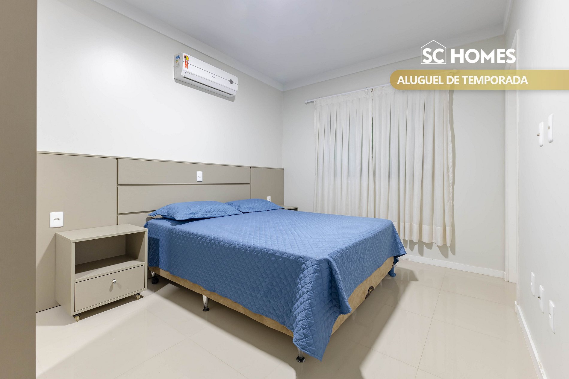 - 01 suíte com cama box de casal e ar condicionado split;