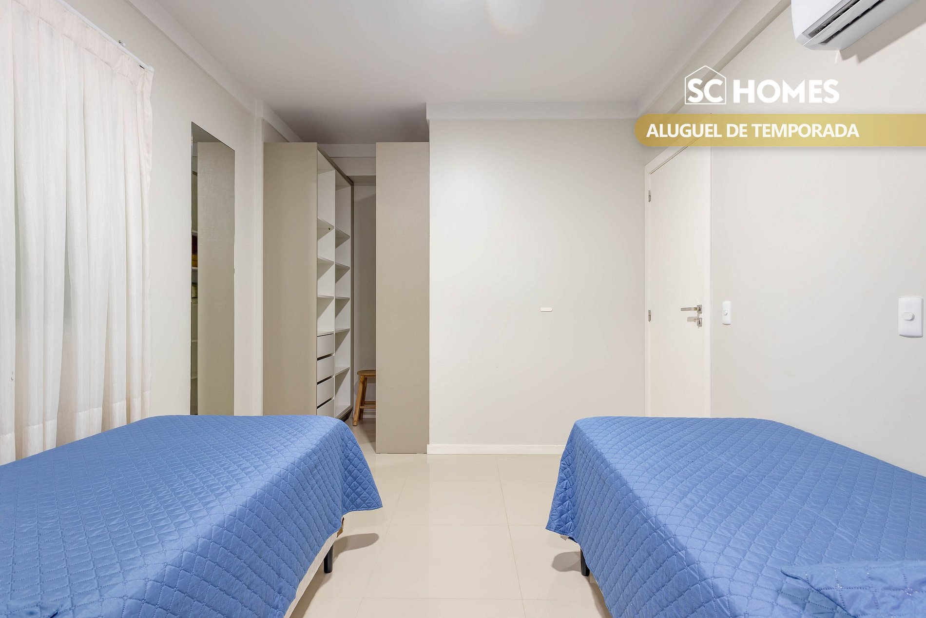 - 01 suíte com duas confortáveis camas box de solteiro e ar condicionado split;
