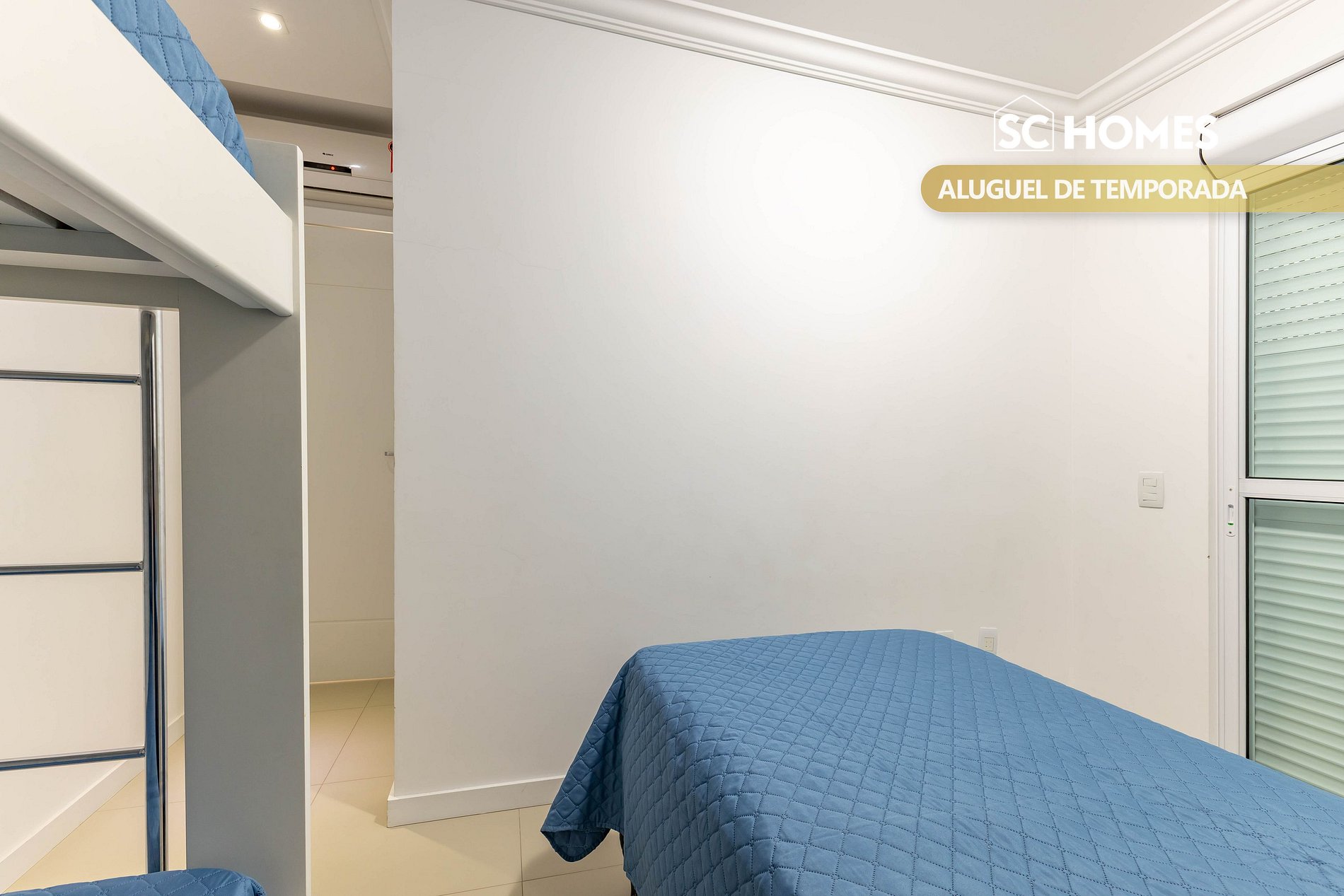 - Sala de estar e jantar integradas com ar condicionado split e TV de LCD;