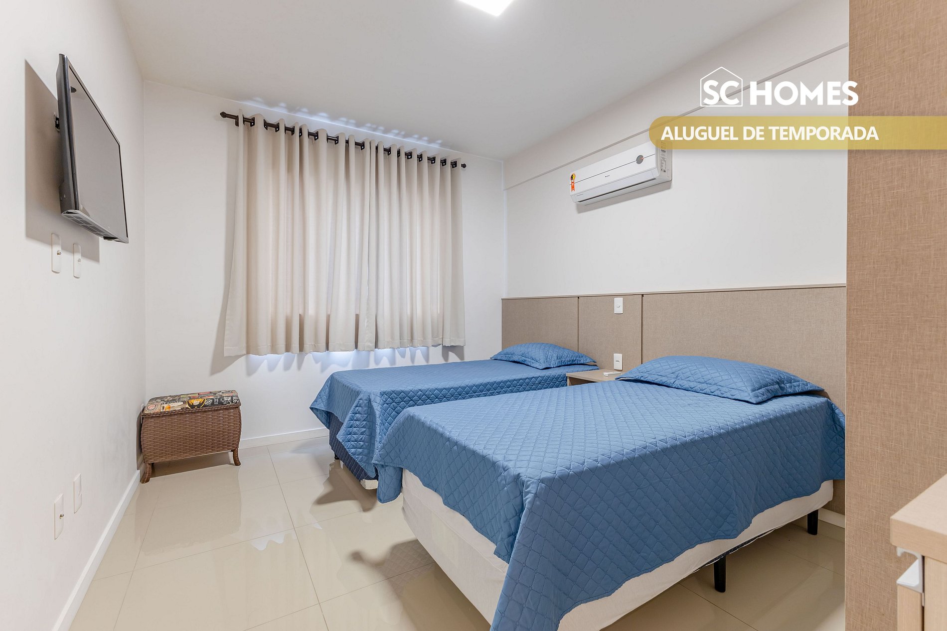 - 01 quarto com duas camas box de solteiro + 02 colchão de solteiro e ar condicionado split;