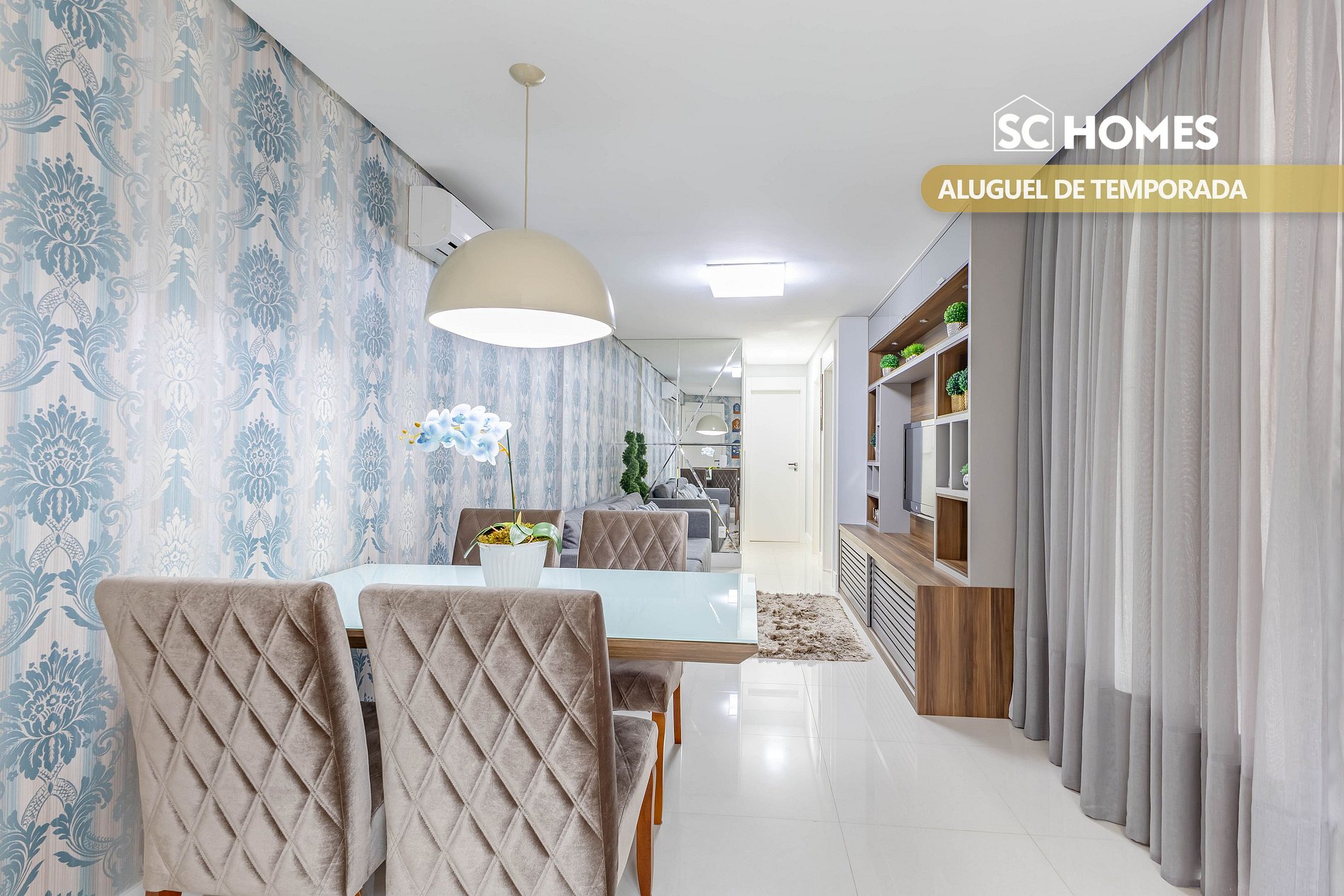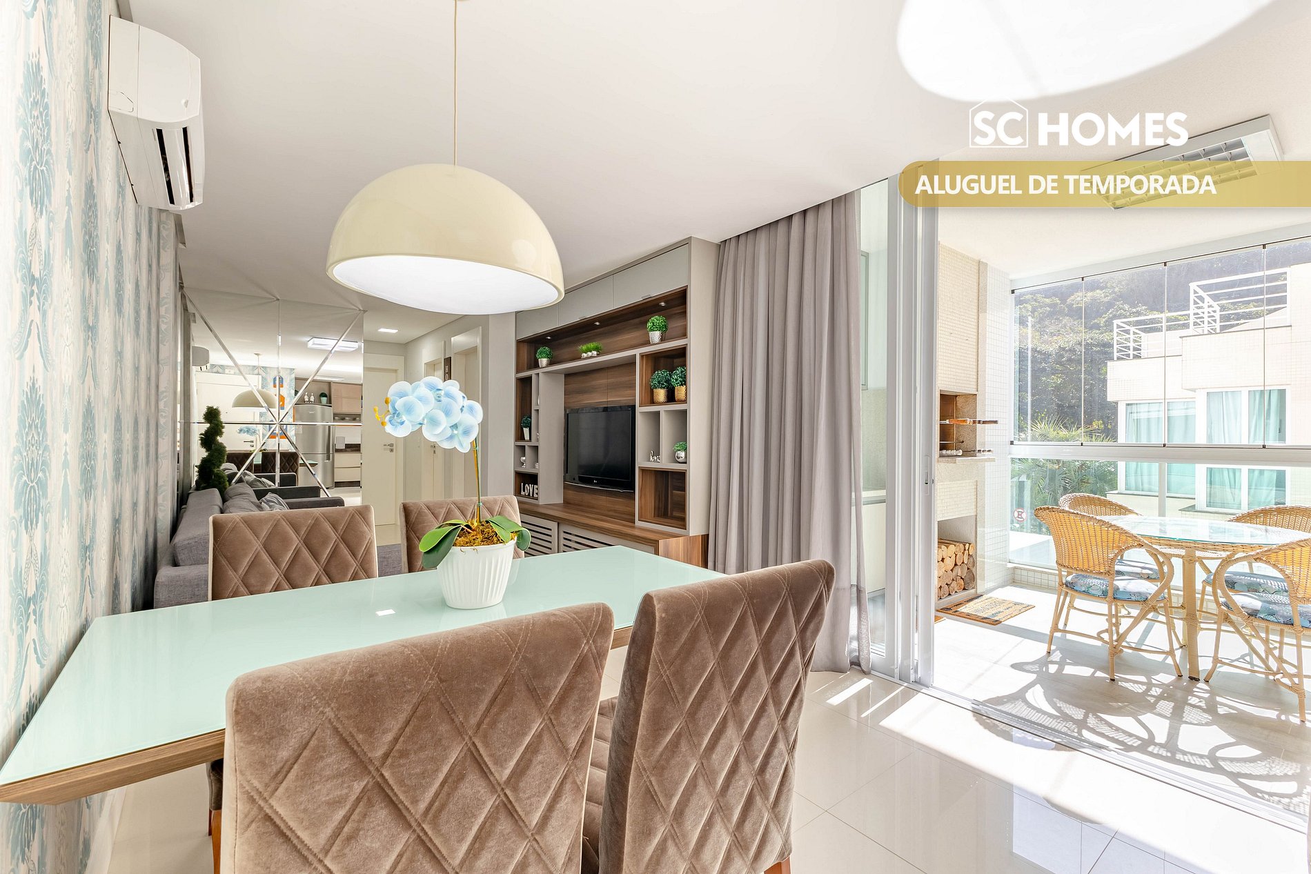 - Sala de estar com TV e BTV, ar condicionado split;