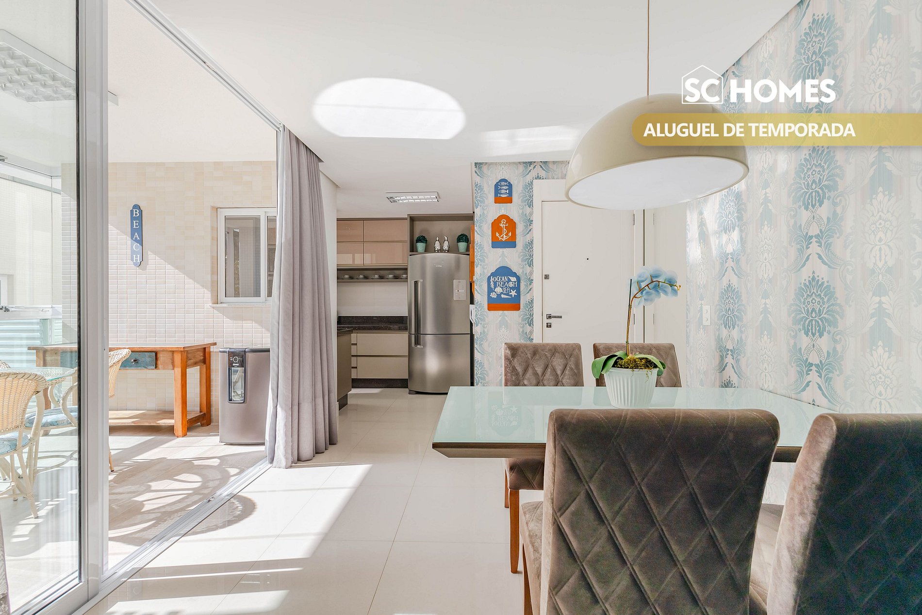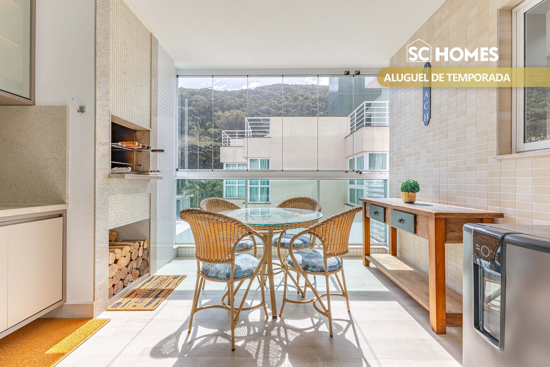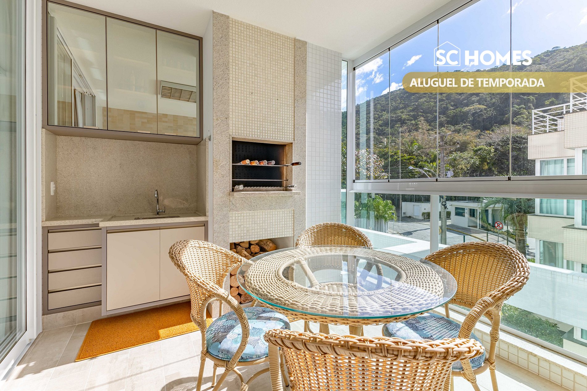 - Sacada com churrasqueira a carvão, com vista interna;
