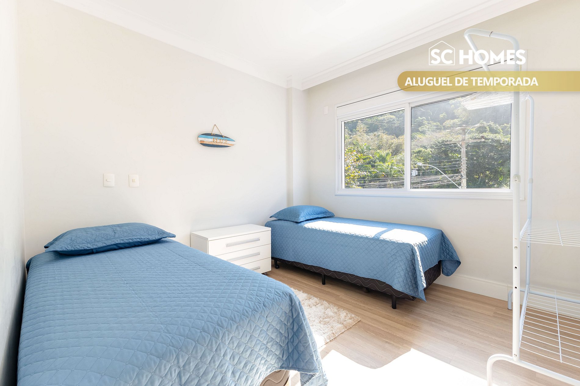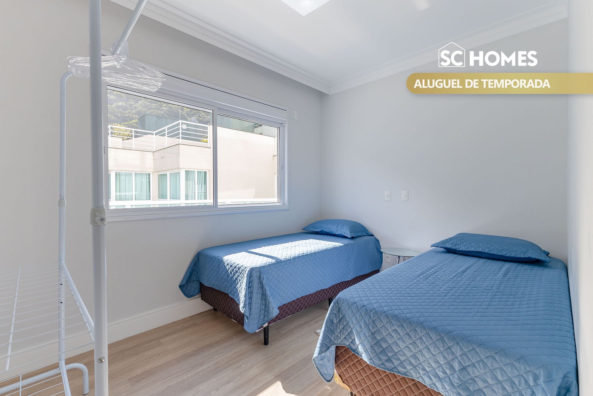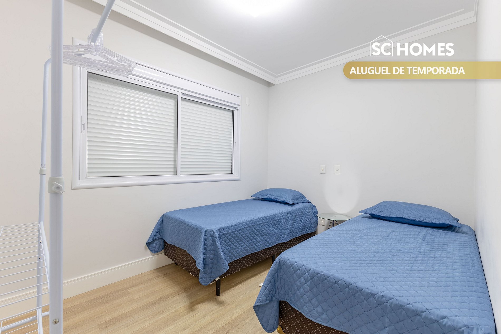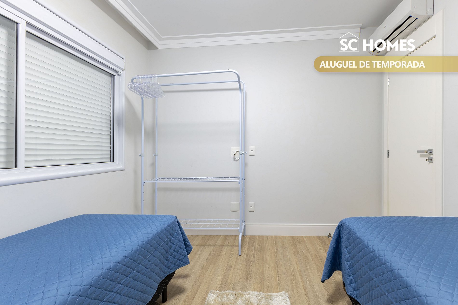 - 01 quarto com 2 camas box de solteiro com ar condicionado split;