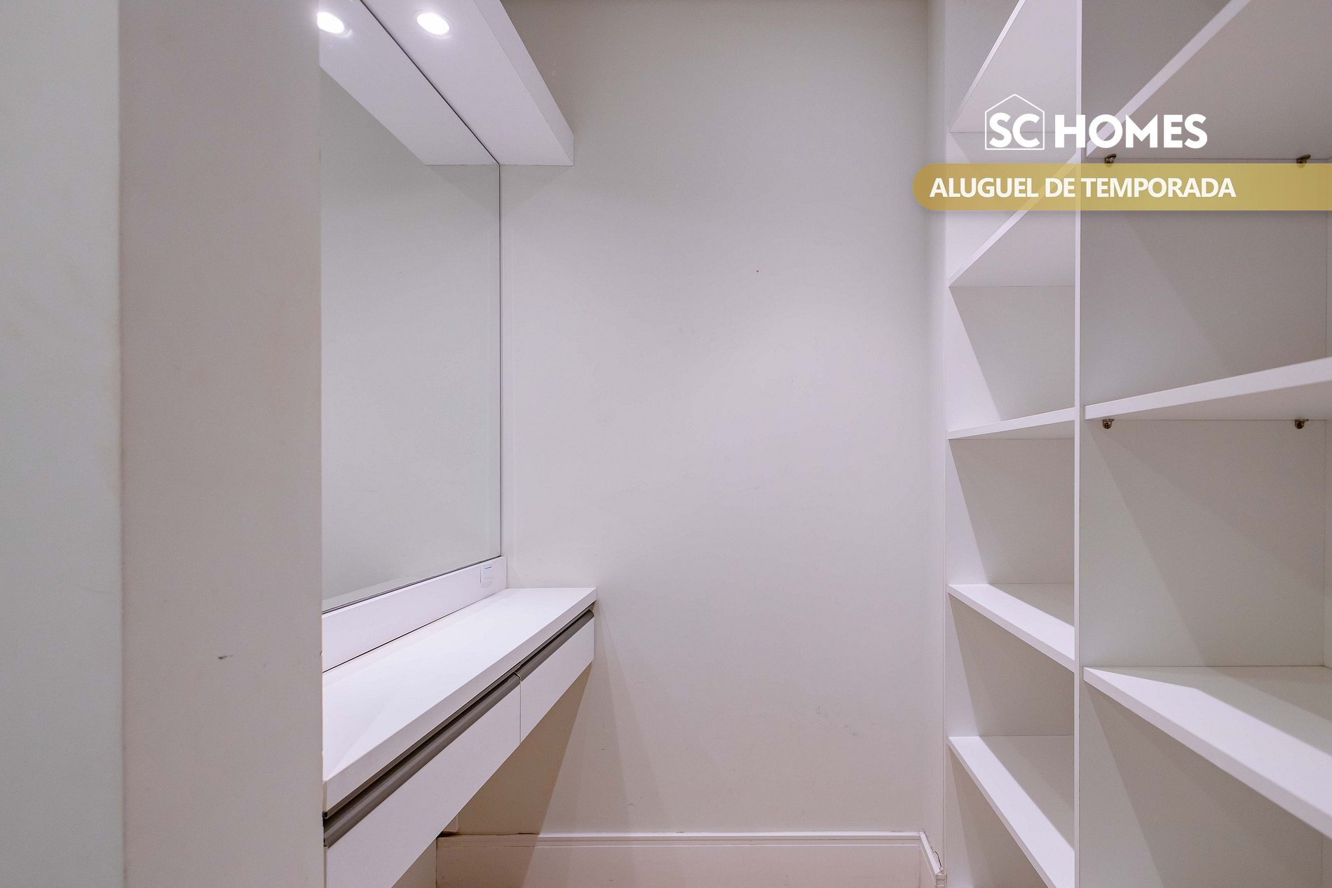 - 01 suíte com cama king de casal, closet, TV e ar condicionado split;