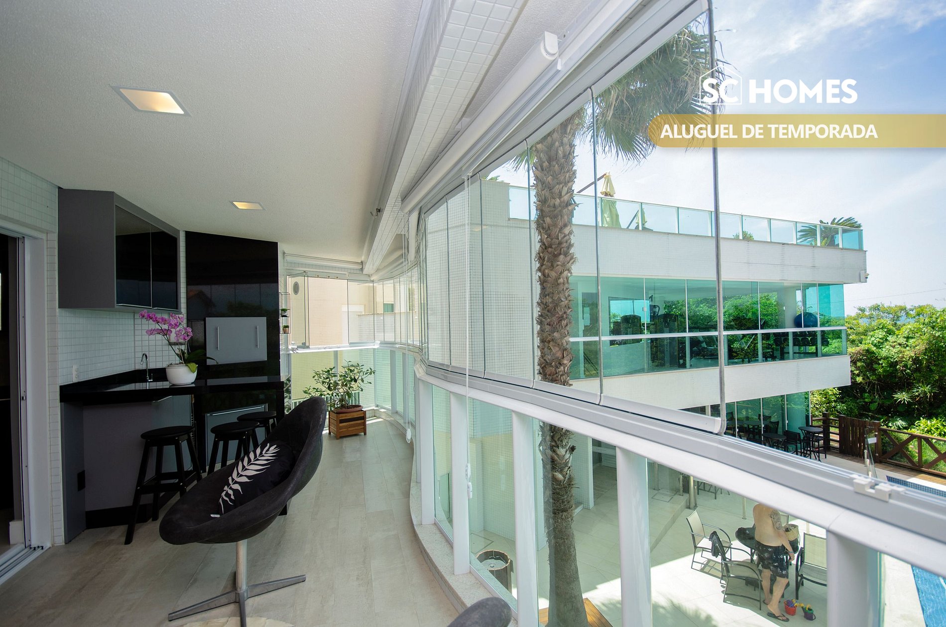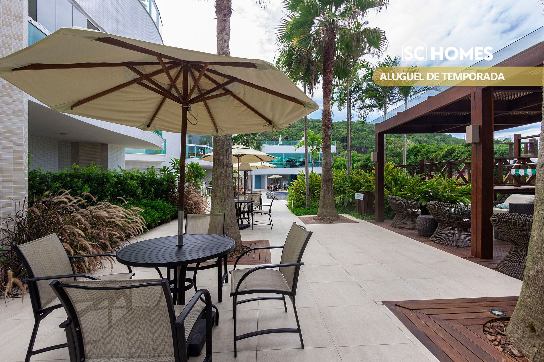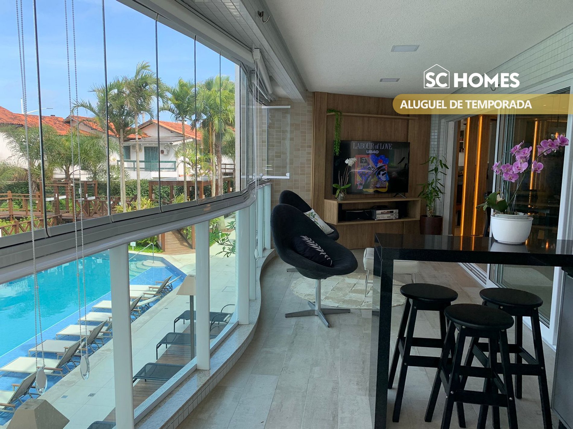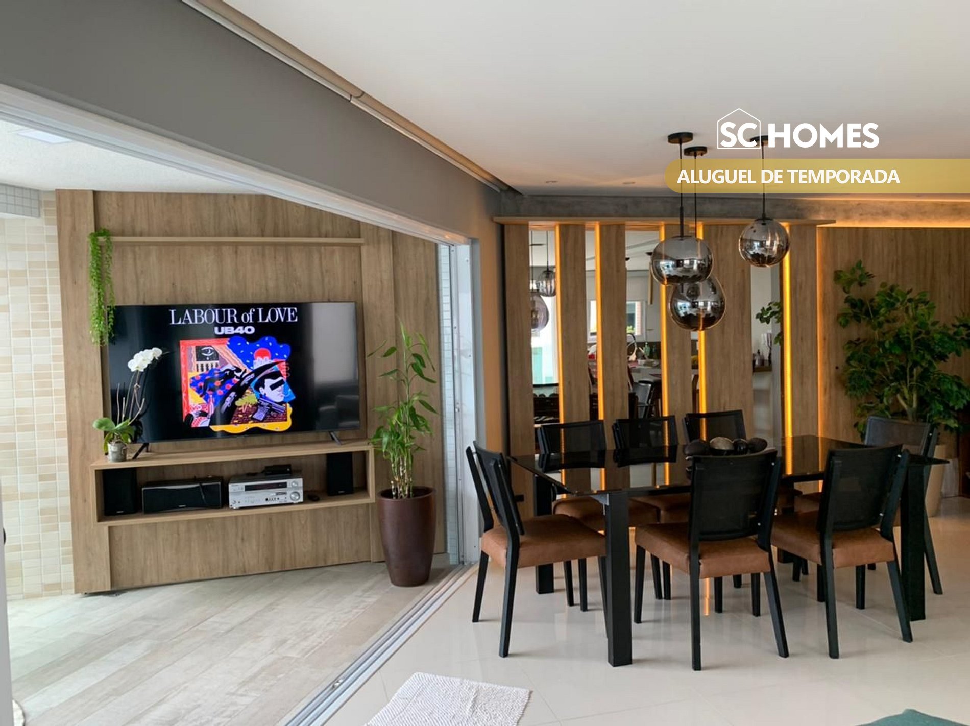 - Sacada com churrasqueiraa carvão com smart TV e vista para a piscina;