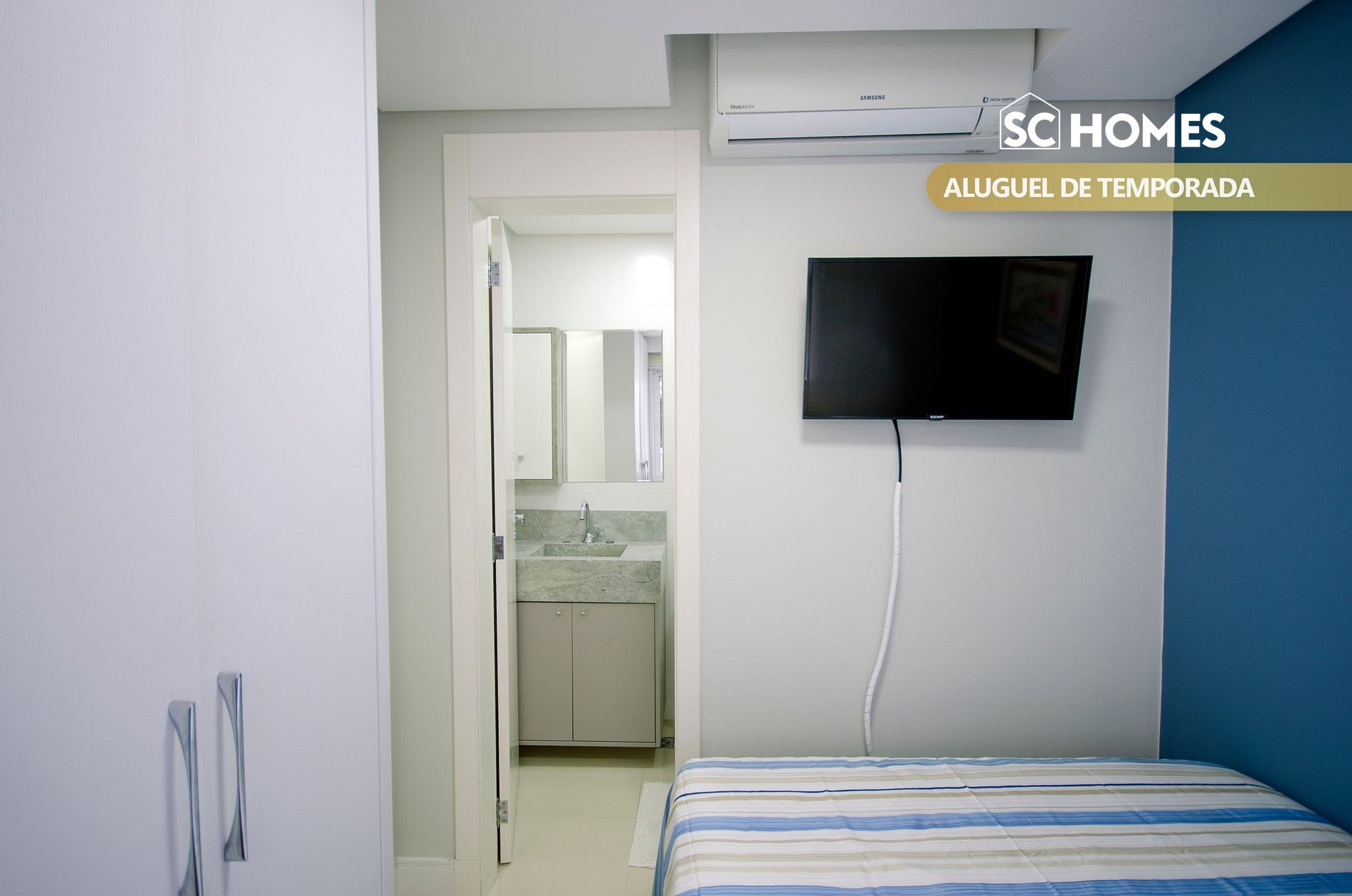 - 01 suíte com cama de casal, com entrada pela cozinha com TV e ar condicionado split;