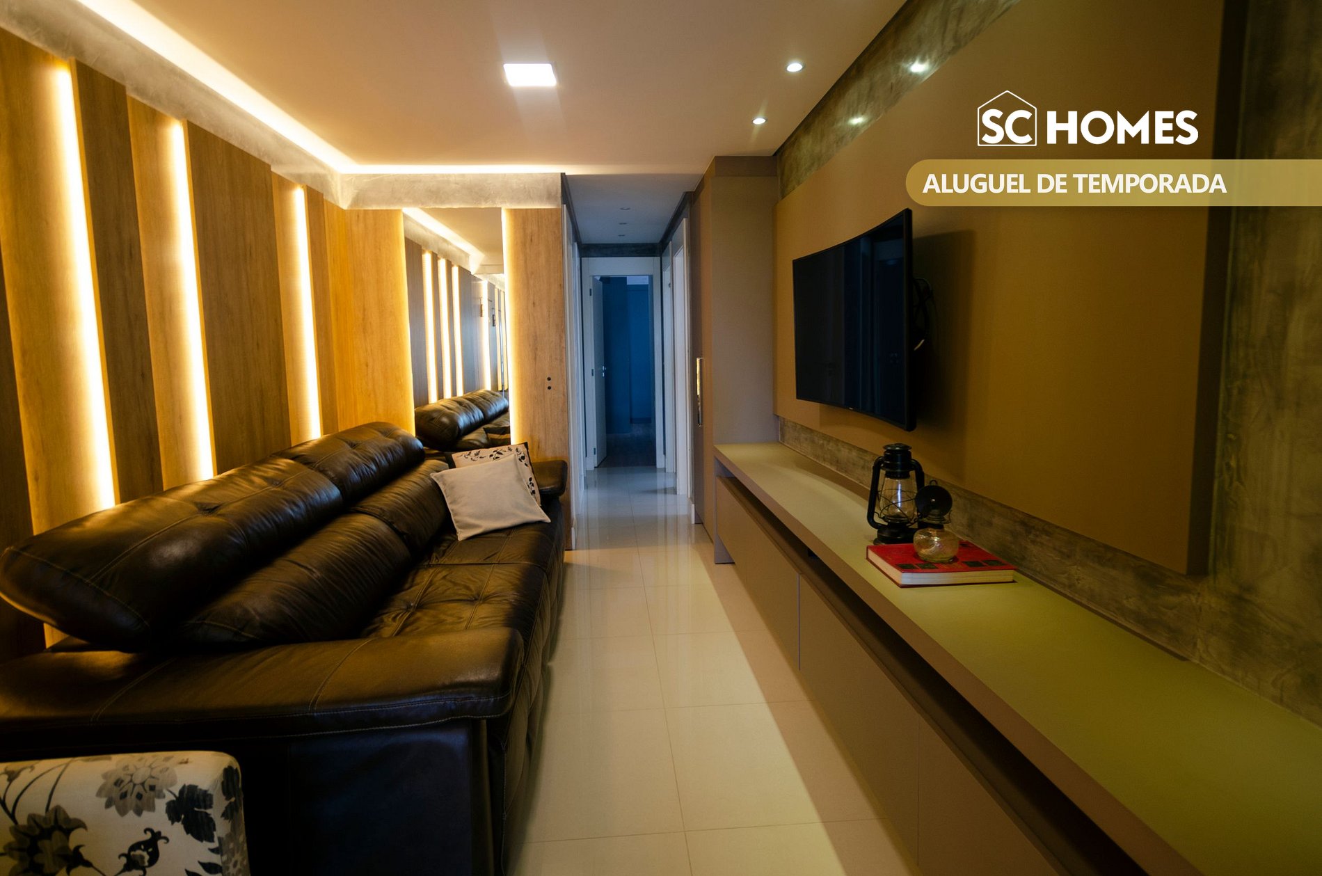 O apartamento tem capacidade para até 08 pessoas em 04 dormitórios (incluindo crianças de qualquer idade), com cozinha equipada, sala de estar e jantar, sacada com churrasqueira e garagem. (Não inclui roupa de cama, mesa e banho);