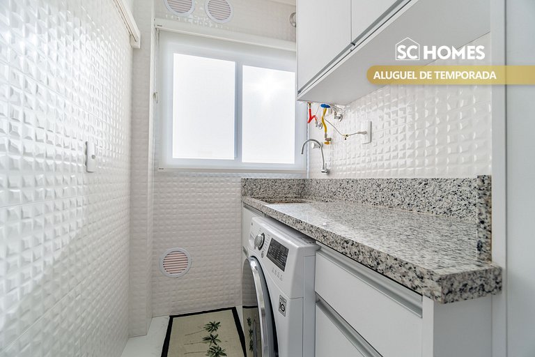 - Área de serviço com máquina lava e seca e aspirador de pó;
